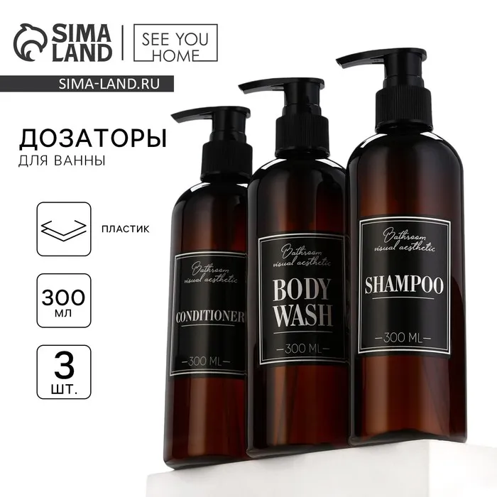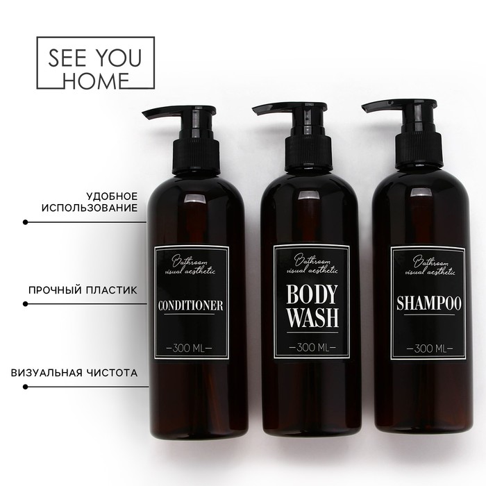 Дозатор для шампуня, кондиционера, гель для душа «Bathroom visual», 300 мл., набор 3 шт.