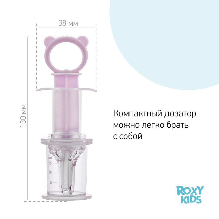Дозатор для приема лекарств ROXY-KIDS поможет обеспечить комфортное введение комфортного введения малышу любых сиропов, лекарств и других жидкостей, если он отказывается их принимать С помощью дозатора можно легко отмерить нужную порцию и контролировать скорость введения лекарства. Содержимое можно аккуратно ввести, пока ребенок будет увлеченно жевать силиконовый наконечник.