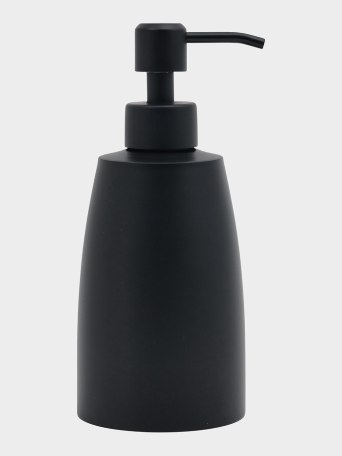 Дозатор для жидкого мыла из нержавеющей стали — строгий чёрный аксессуар объёмом 400 мл для тех, кто выбирает функциональность без компромиссов. Его матово-чёрное покрытие подчёркивает современный интерьер, а надёжный ручной насос обеспечивает точную дозировку — экономно, гигиенично, без лишних движений.