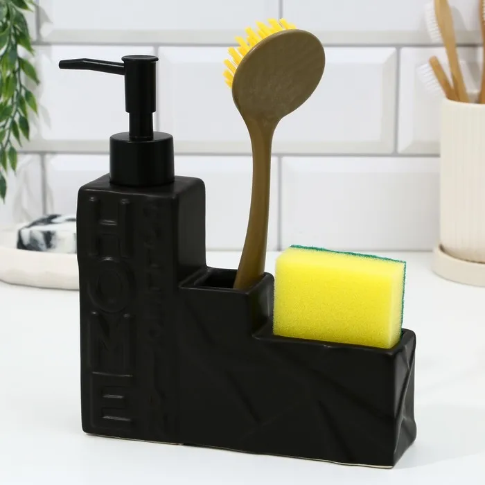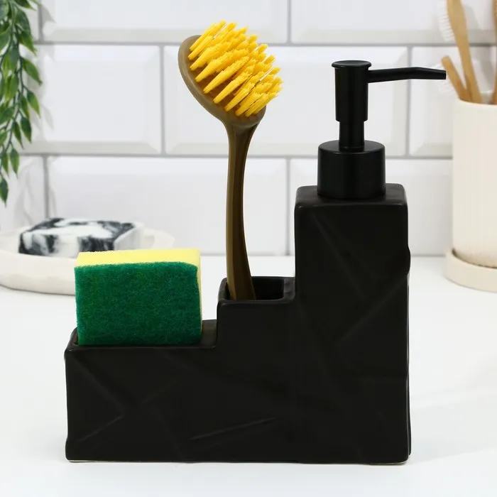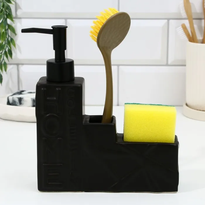 Дозатор для моющего средства- это незаменимая вещь для кухни или ванной. Диспенсер кухонный с подставкой для губки. Дозатор подойдёт для средства для мытья посуды или жидкого мыла. Специальное отделение для губки сэкономит место у раковины и обеспечит более комфортное хранение необходимых вещей на кухне или в ванной. Вы можете залить в дозатор любое средство для мытья посуды или мыло для рук, изделие будет экономно их расходовать. Отличное решение, чтобы поддерживать порядок на кухне. Компактный размер дозатора и продуманное исполнение, делают его идеальным для размещения в зоне мойки на кухне или раковины в ванной. Такой диспенсер будет уместен как дома, в квартире, так и на даче или в саду. Диспенсер для жидких моющих средств с отделением для губки - это отличный выбор для подарка на любой праздник: новый год, 8 марта, 23 февраля, 14 февраля, день рождения, новоселье или просто повод обновить интерьер.