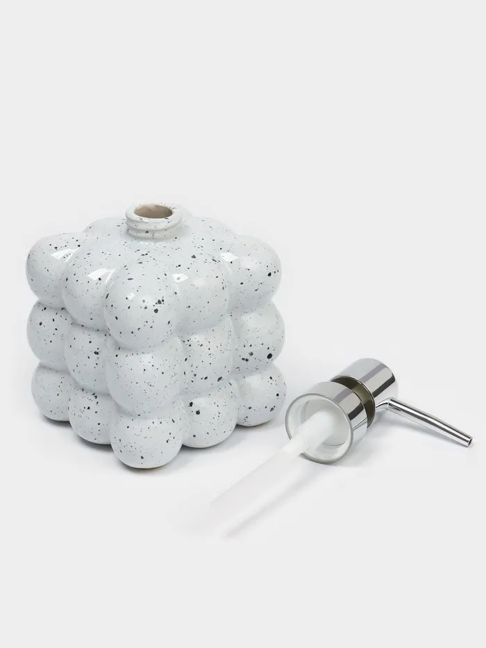 Белый керамический дозатор для жидкого мыла. Минималистичный дизайн с аккуратным рисунком украсит ваш интерьер. Легко впишется в любую обстановку. Ручной механизм управления обеспечивает простоту и надежность использования. Дозатор не требует подключения к источнику питания.