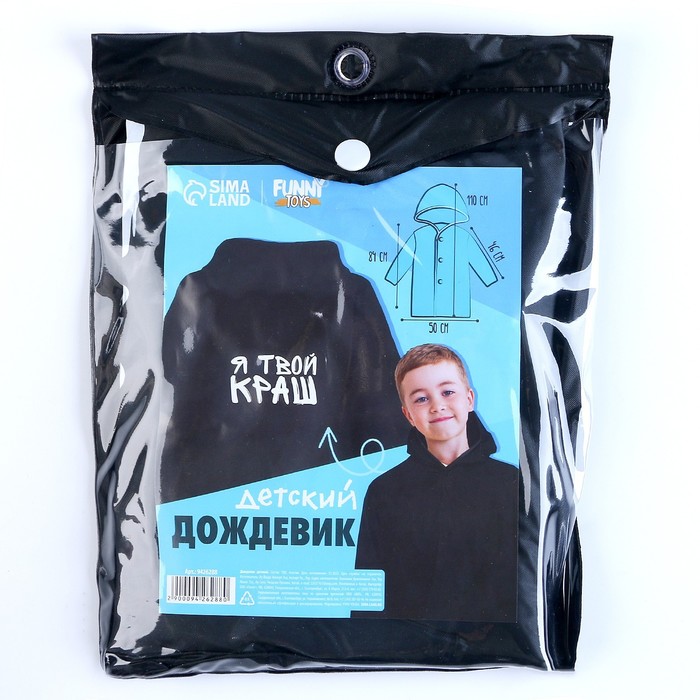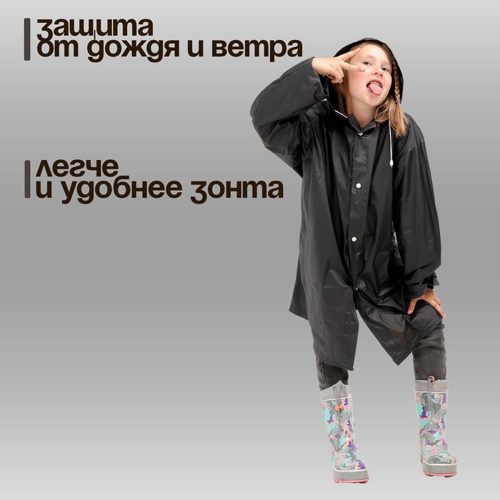 Размер дождевика рассчитан на детей ростом от 120 до 160 см.