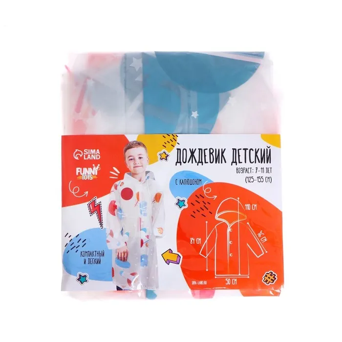 Дождевик детский «Космос», 125-155 см — Характеристики
