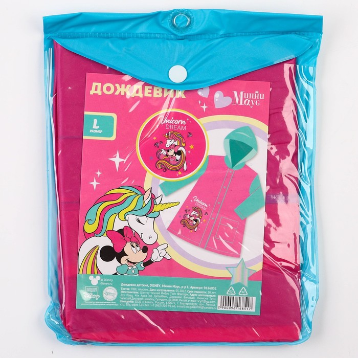 Дождевик детский, размер L, 110-120 см, Минни Маус — Характеристики
