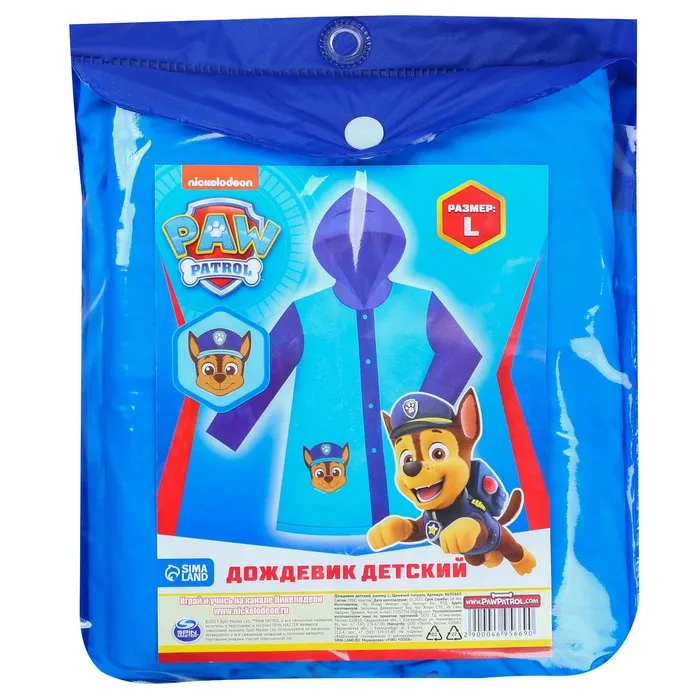 Дождевик детский, размер L, 110-120 см, Щенячий патруль — Характеристики