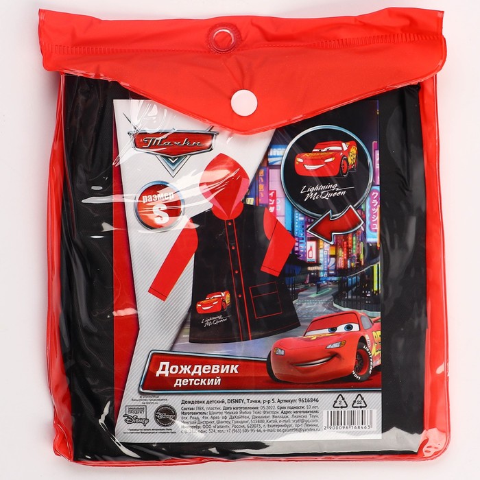 Дождевик детский, размер S, 92-98 см, Тачки — Характеристики