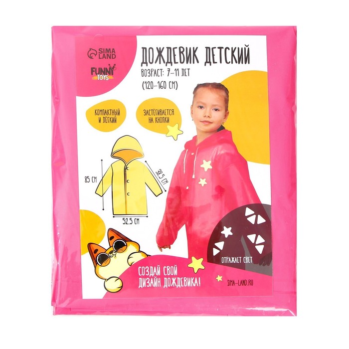 Дождевик детский со светоотражающими элементами, розовый, 120-160 см — Характеристики