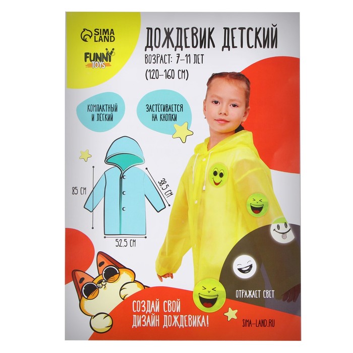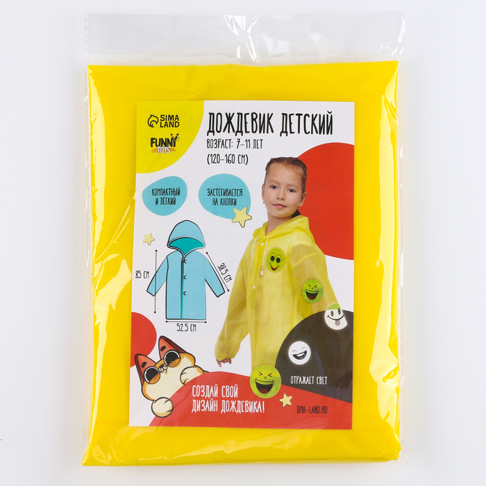 Дождевик детский со светоотражающими элементами, жёлтый, 120-160 см — Характеристики