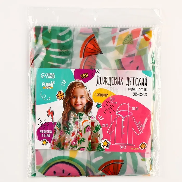 Дождевик детский «Тропики», рост 125-155 см — Характеристики