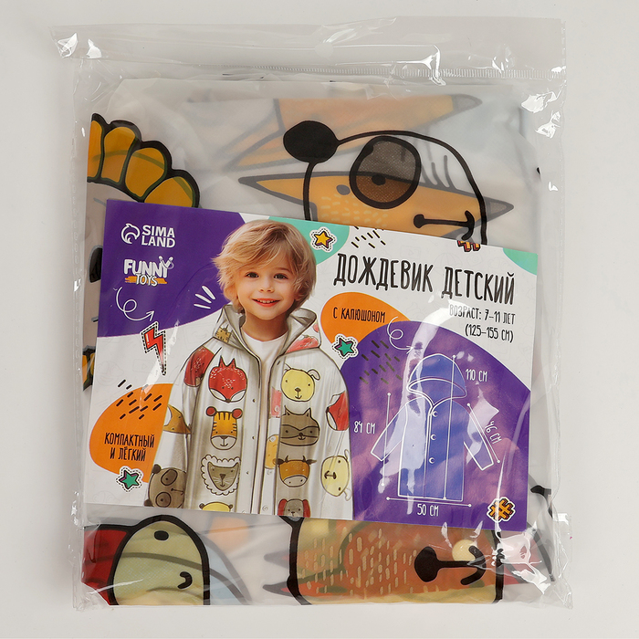 Дождевик детский «Звери», рост 125-155 см — Характеристики