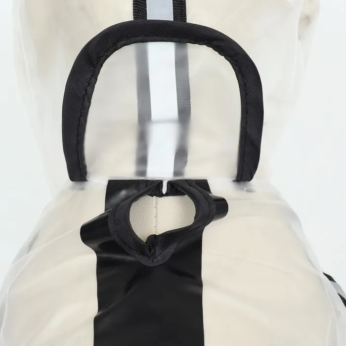 У дождевика есть шнурок для регулировки размера на талии, а также отверстие для поводка.
