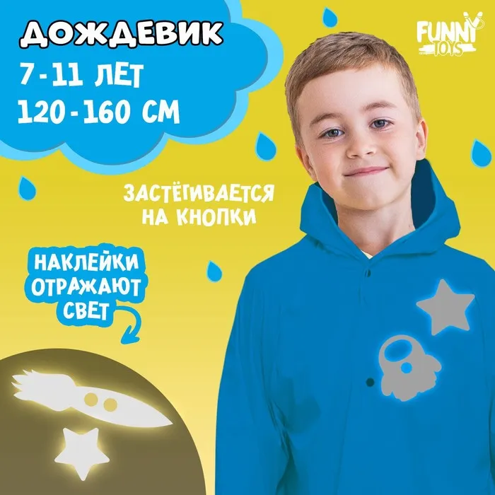 Дождевик «Космос» со светоотражающими наклейками, рост 120-160 см — Характеристики