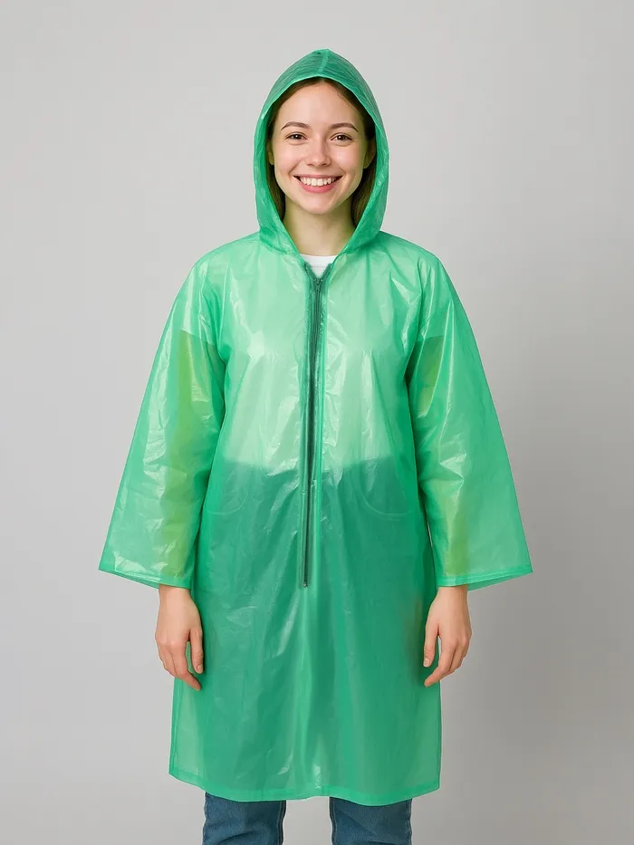 Дождевик сохранит вашу одежду чистой и сухой. В сложенном виде он занимает мало места и легко убирается в рюкзак или сумку. С дождевиком руки остаются свободными, не нужно брать с собой зонтик.