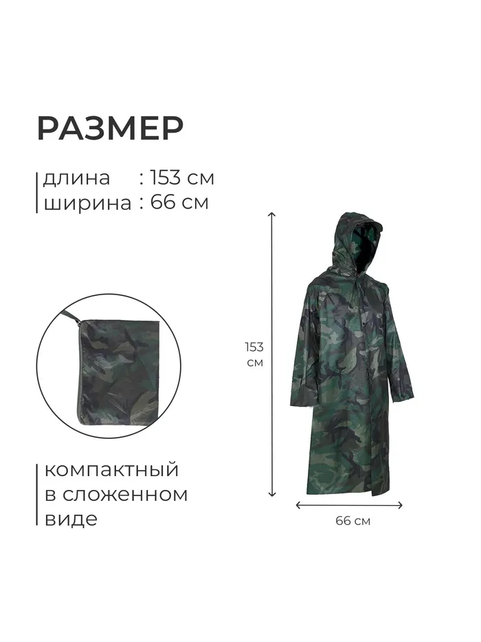 Дождевик сохранит вашу одежду чистой и сухой. В сложенном виде он занимает совсем мало места и легко убирается в рюкзак или дамскую сумочку.