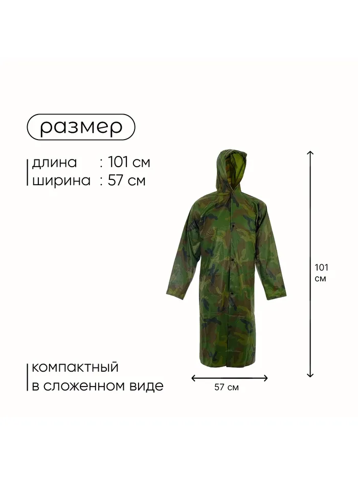 Плащ-дождевик защищает одежду от влаги. В дождевике руки останутся свободными, потому что не придётся брать с собой зонтик. Плащ складывается и хранится в компактном чехле на молнии. В таком виде он занимает мало места и легко вмещается в рюкзак или сумочку.