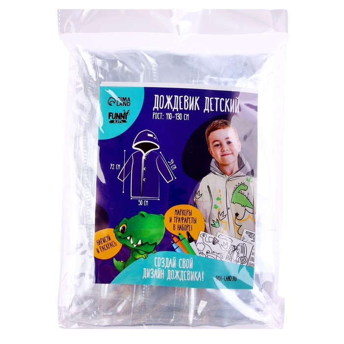 - Размер дождевика рассчитан на детей ростом от 110 до 130 см.