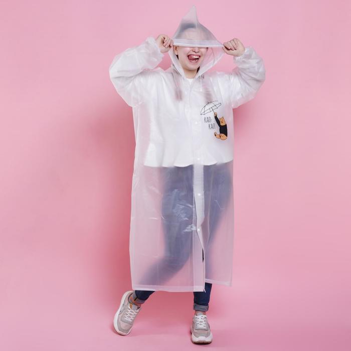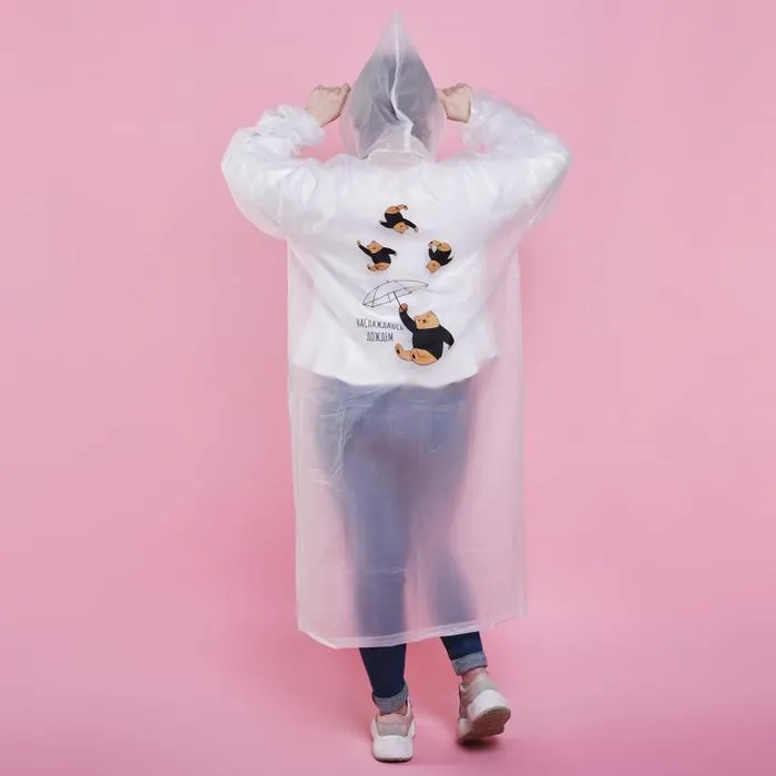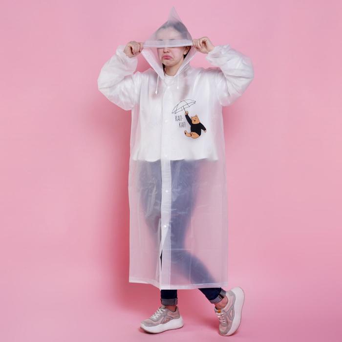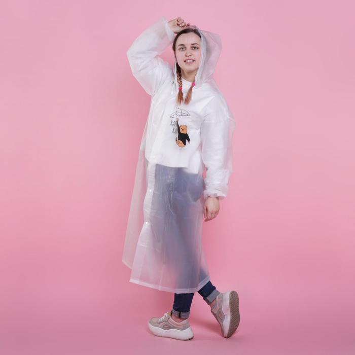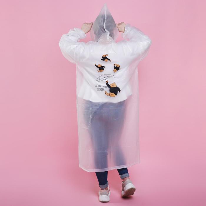 Дождевик взрослый плащ «Наслаждаюсь дождём», размер 42-48, 60×110 см, белый — Характеристики