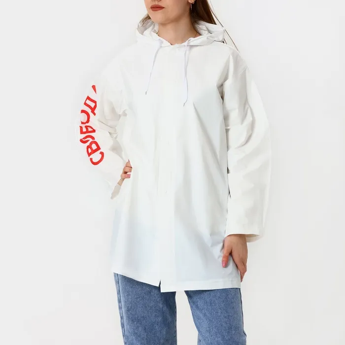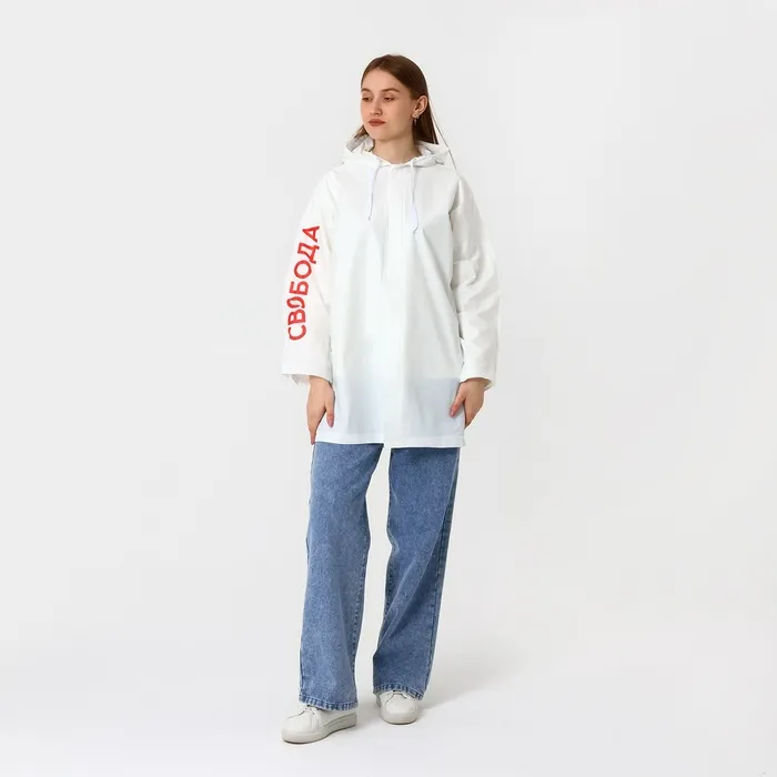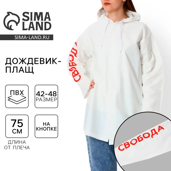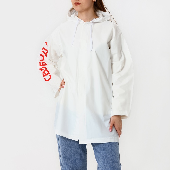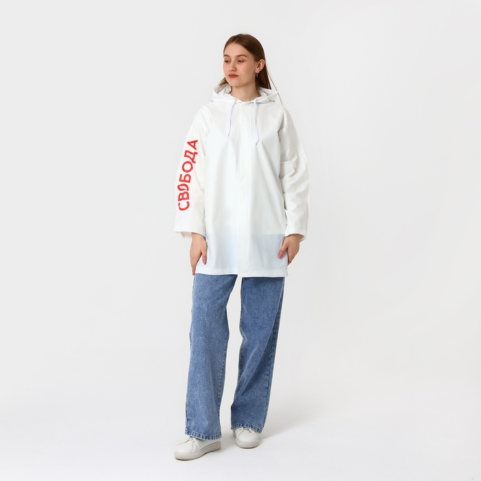 Дождевик взрослый укороченный «Свобода», на кнопках, белый, размер 42-48 — Характеристики