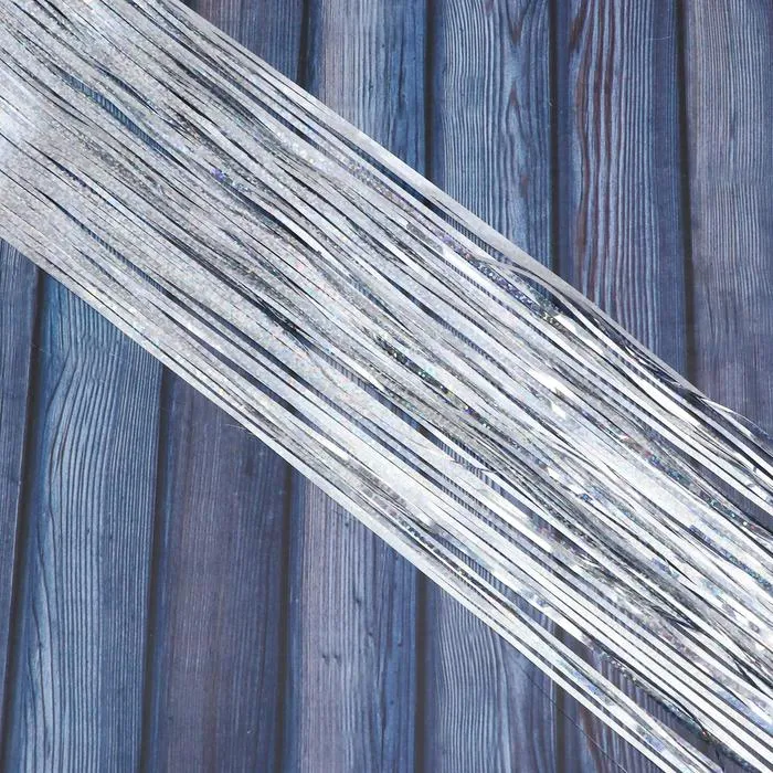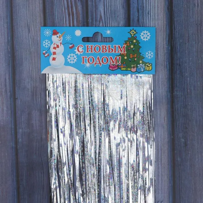 Голографический дождик — это стильный и светящийся элемент декора для празднования Нового года. Длина полосы — 50 см, ширина — 20 см, серебристый оттенок создаёт ощущение морозного блеска и добавляет ёлке настроения зимнего торжества. Изделие выполнено в духе классики, скандинавского уюта и советской новогодней эстетики, что делает его универсальным решением для разных стилей оформления.
