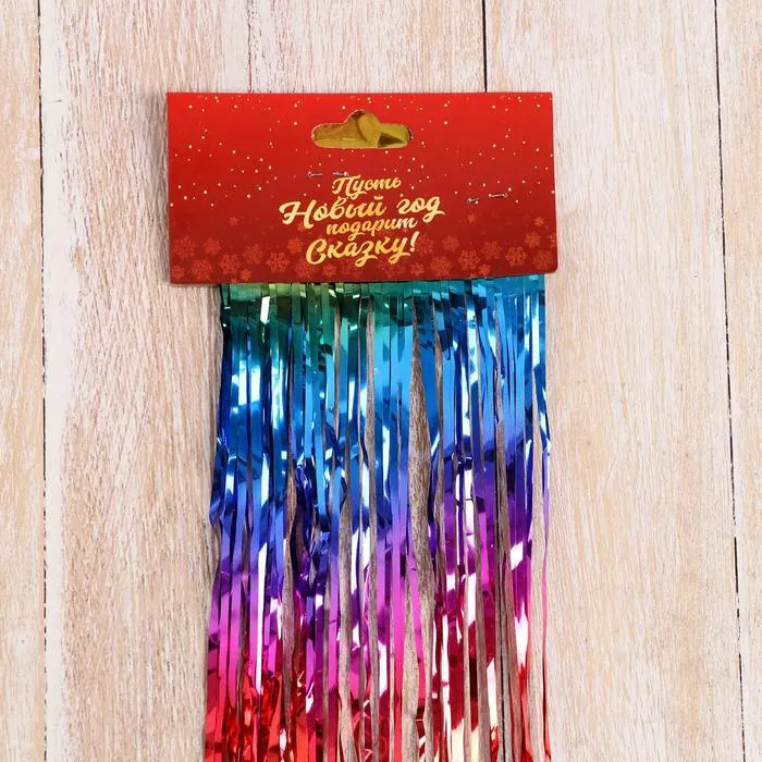 Этот дождик делает дом частью вашей истории о чуде и подарках. Разноцветные тона и мерцающая поверхность работают вместе, чтобы передать дух Нового года и предпраздничное ожидание. Используйте его как фон для других украшений или как яркий акцент — одинаково хорошо усиливает атмосферу торжества и доброжелательность дома.
