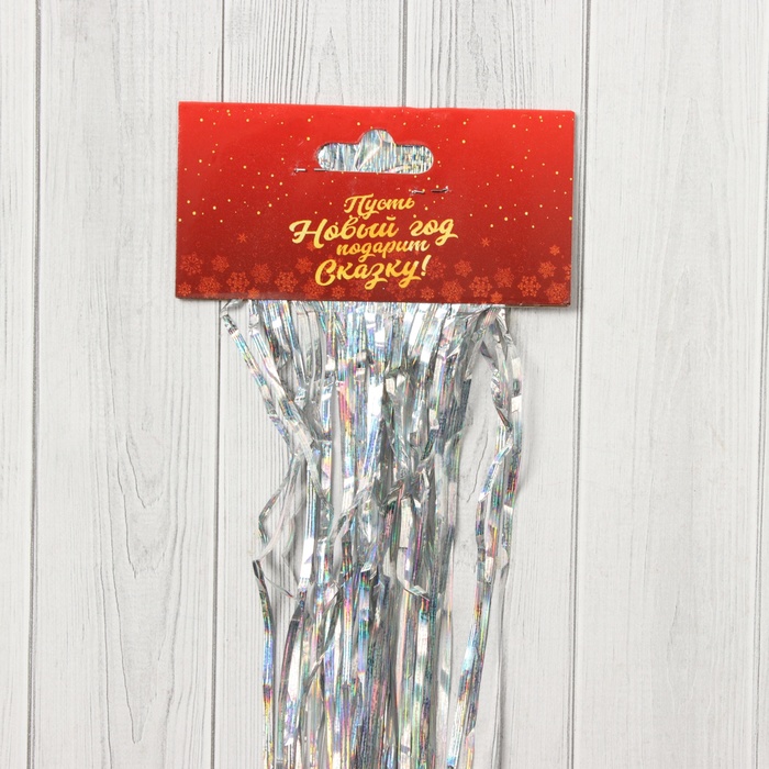 Этот дождик делает любую зону частью вашей истории о подарках и зимнем чуде. Серебристые тона работают вместе с белым, красным или золотым декором, чтобы передать дух Нового года и тихое предпраздничное ожидание. Используйте как фон для других украшений или как самостоятельный элемент — одинаково мягко усиливает атмосферу торжества и домашнюю тёплую эмоцию.