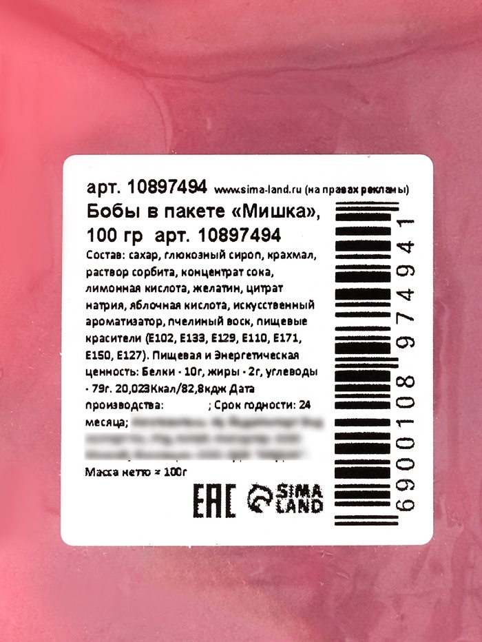 Драже бобы новогодние в пакете «Мишка» 100 г — Характеристики