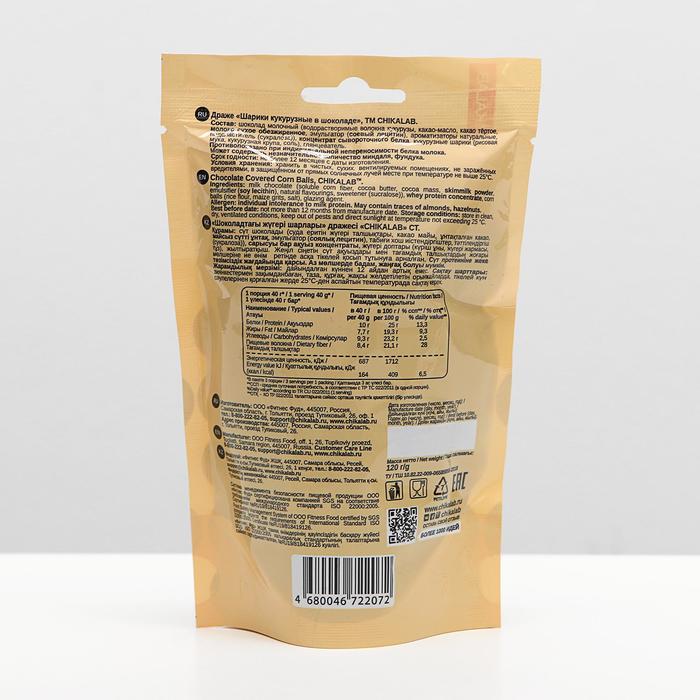 CHIKALAB Драже — шарики кукурузные в шоколаде — это восхитительное и хрустящее угощение, которое порадует любителей десертов. Эти шарики создаются из легких кукурузных хлопьев, которые покрыты шоколадом, что придаёт им неповторимый вкус и текстуру.
