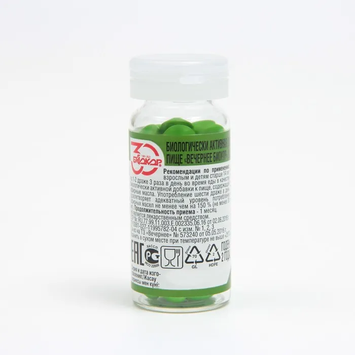 • Благодаря природному комплексу трав драже Вечернее «Биокор» обладает мягким успокаивающим и спазмолитическим действием.