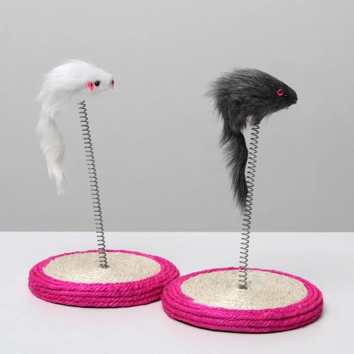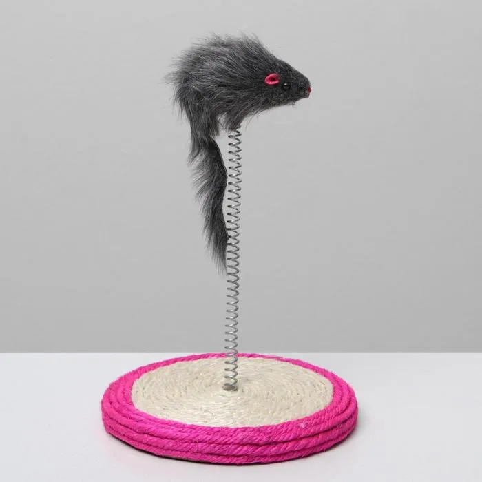 Дразнилка для кошек "Мышь на сизалевой подставке", 15 х 23 см, микс цветов