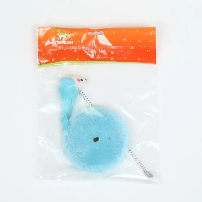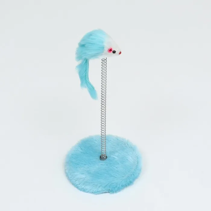 Дразнилка для кошек на пружине с мышью (5 см), 10,5 х 23 см, голубая