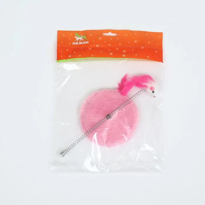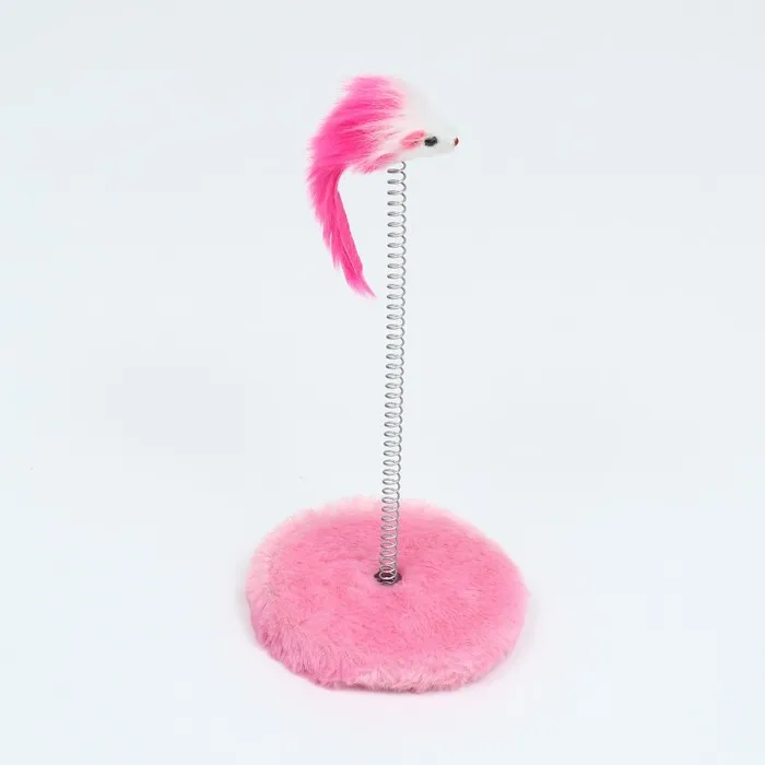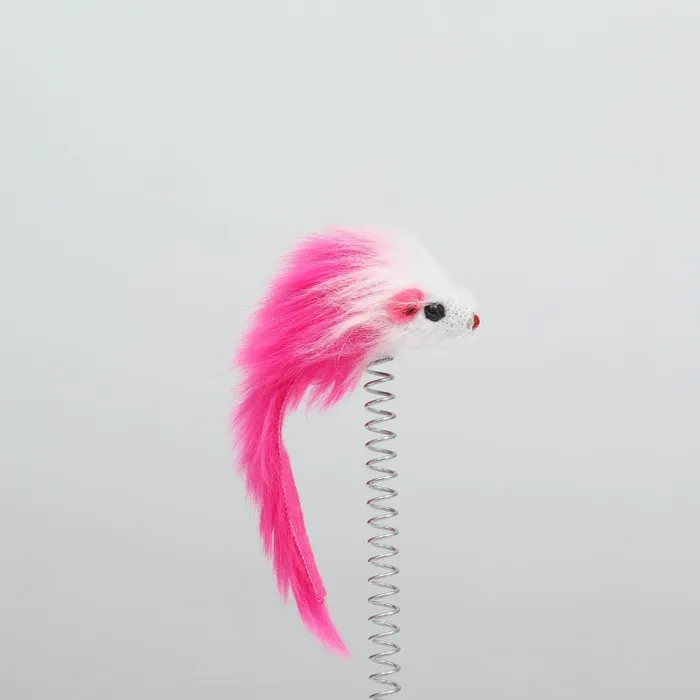 Дразнилка для кошек на пружине с мышью (5 см), 10,5 х 23 см, розовая