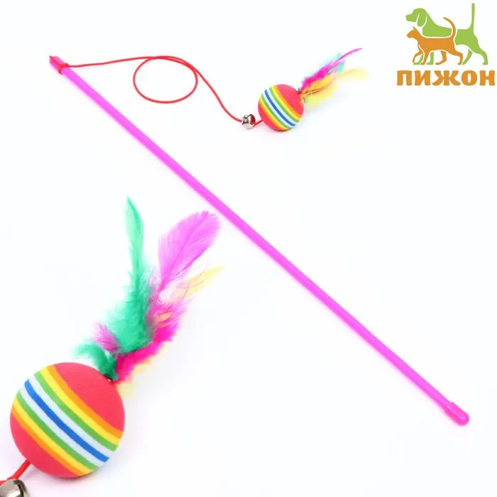Дразнилка "Перышко" с бубенчиком, 59 см, микс цветов — Характеристики
