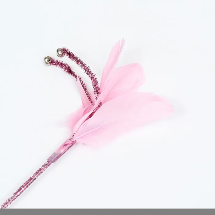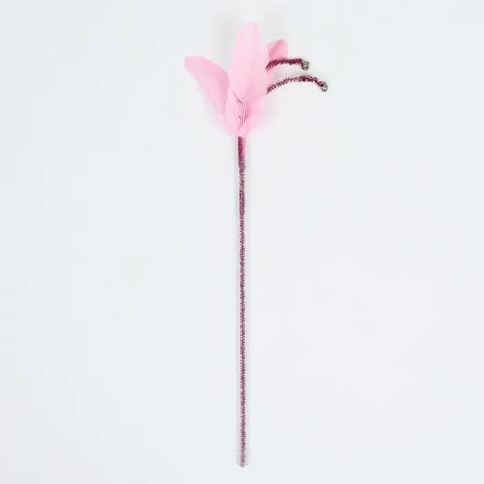 Дразнилка "Розовое Чудо" с перьями и бубенчиками 30 см, розовая — Характеристики