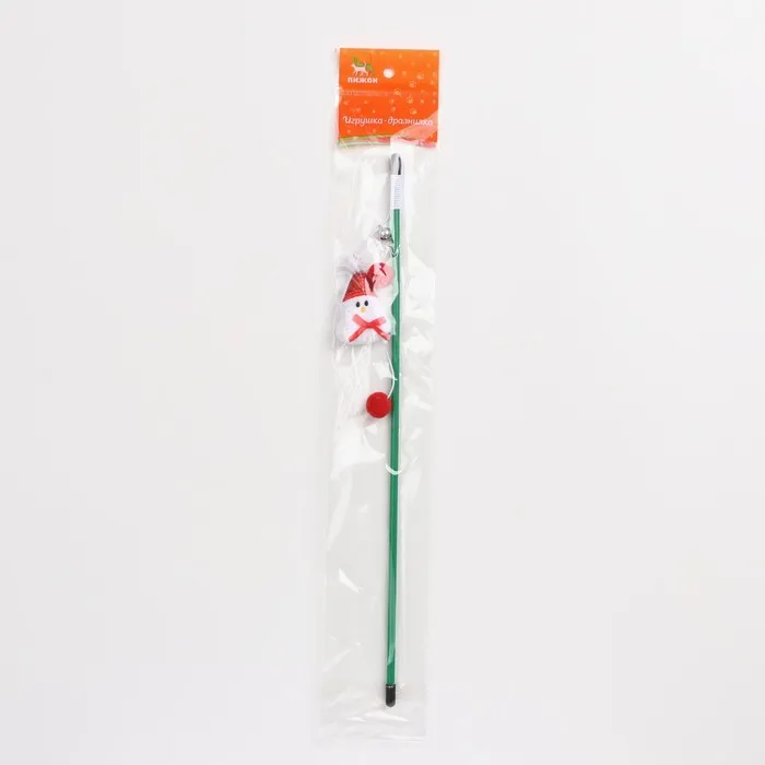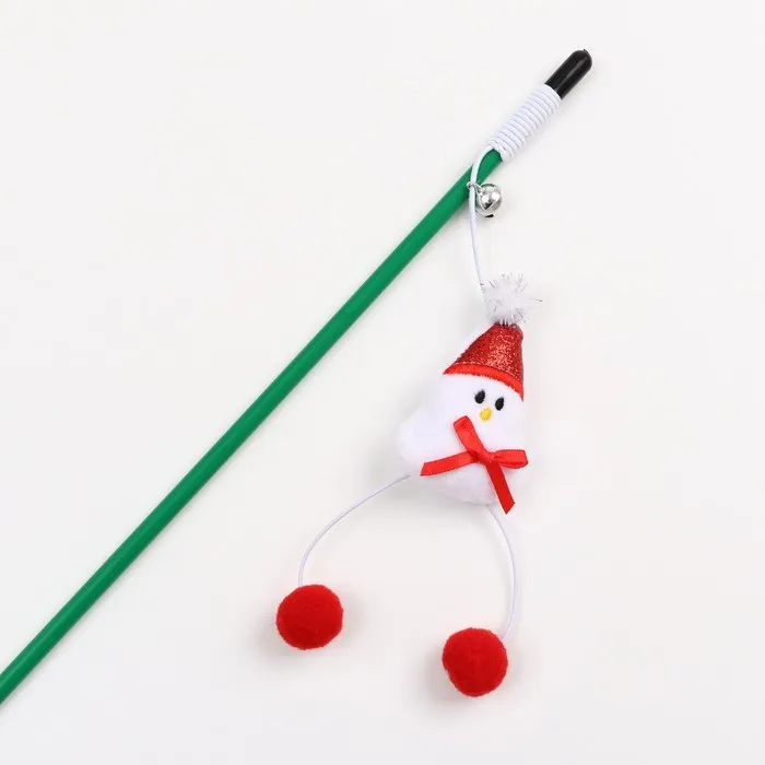 Дразнилка-удочка для кошек с бубенчиком "Снеговик", 40 см