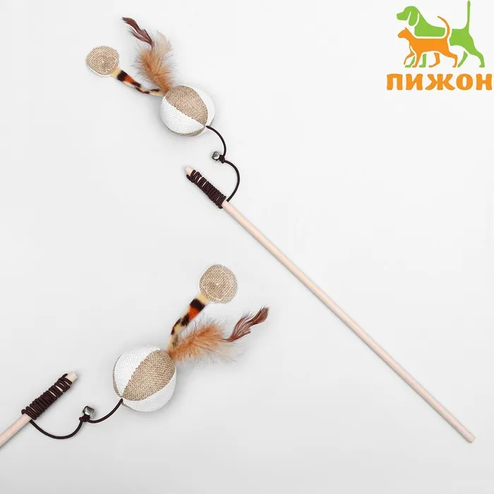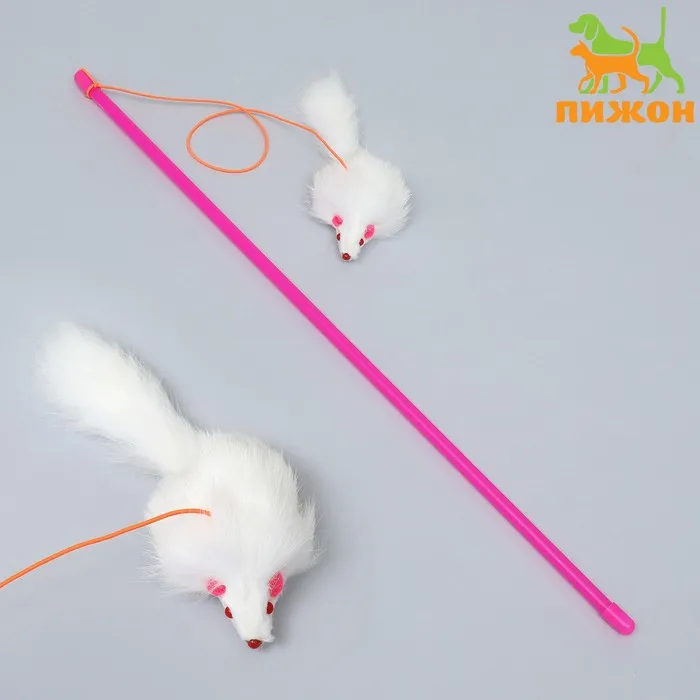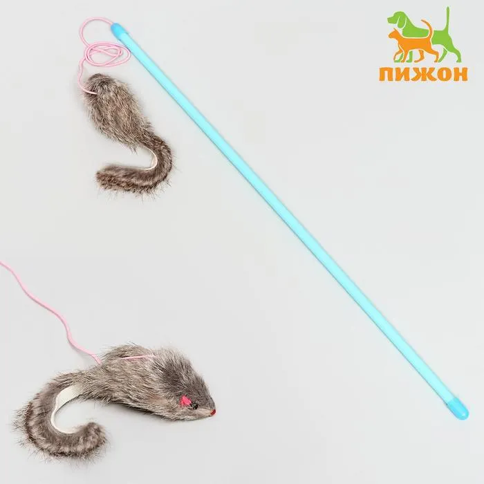 Дразнилка-удочка с мышью из натурального меха с перьями, микс цветов — Характеристики