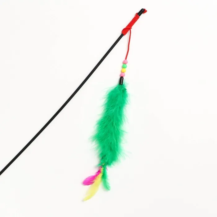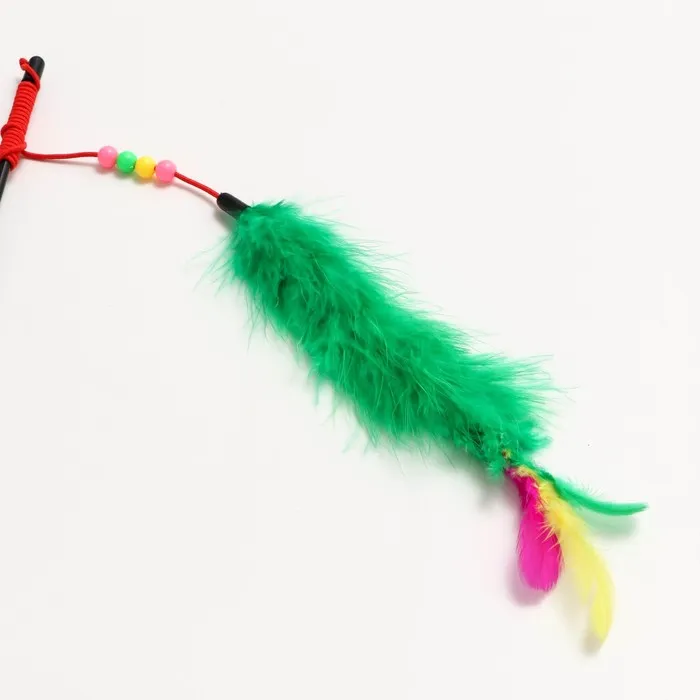 Перышки на дразнилке шевелятся от малейшего дуновения ветерка, что еще больше привлечет прирожденного охотника к такой интересной игрушке!