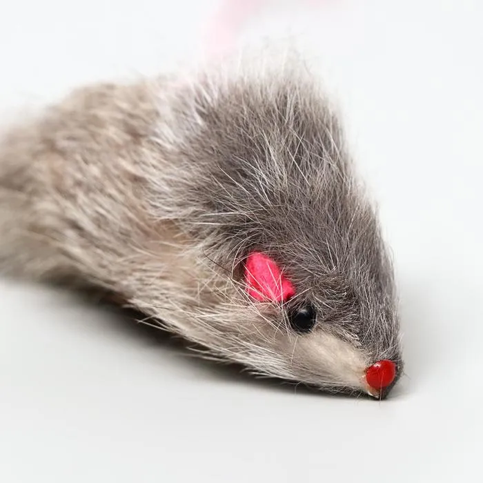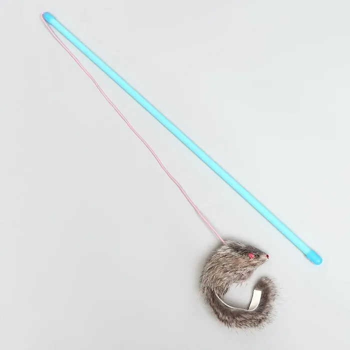 Дразнилка-удочка с серой мышью из натурального меха, 46 см, палочка микс цветов