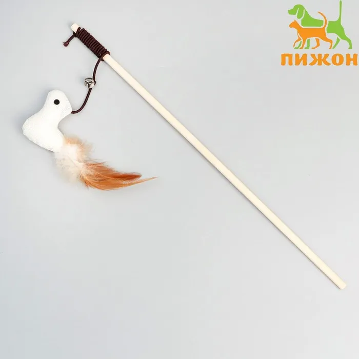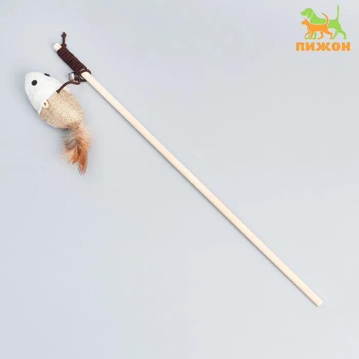 Дразнилка-удочка с серой мышью из натурального меха, 46 см, палочка микс цветов — Характеристики