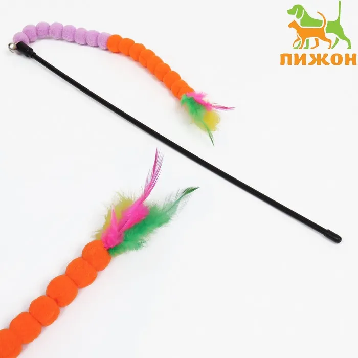 Дразнилка-удочка - это игрушка, которая позволяет вам проводить время со своей любимой кошкой и развлекать ее. Игрушка состоит из деревянной ручки, на которой закреплен шнур с шариком и бубенчиком.