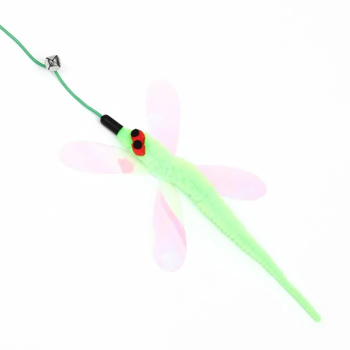 Дразнилка-удочка "Стрекоза" зелёная - игрушка, созданная специально для интерактивной игры со своей кошкой! Представлена в виде палочки на верёвке, а на конце имеется мышка с хвостом и бубенчиком. Бубенчик издаёт звонкий звук, который привлекает внимание и вызывает интерес.