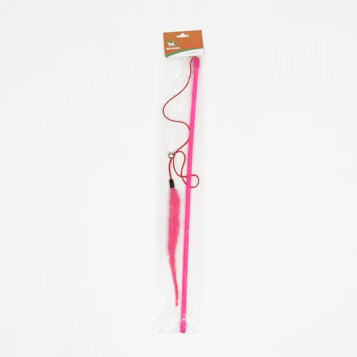 Дразнилка-удочка "Змейка" с бубенчиком, розовая на розовой ручке