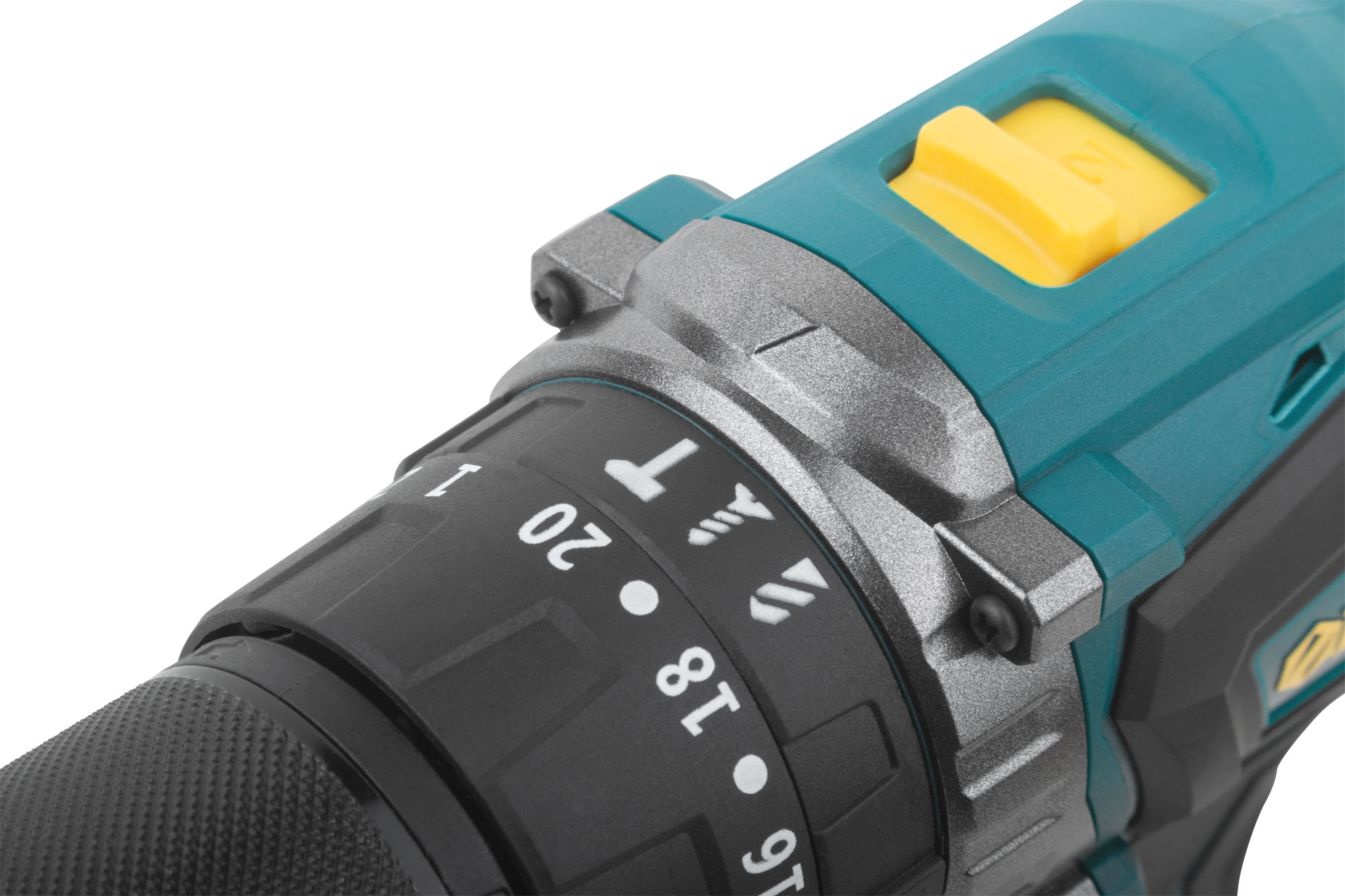 Оснащена двумя Li-Ion аккумуляторами емкостью 2,0 Ач, дрель-шуруповерт обеспечивает длительное время работы и быструю зарядку всего за 1 час. Эргономичная конструкция и резиновые накладки делают работу комфортной и безопасной.
