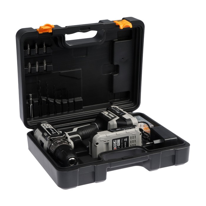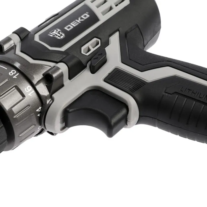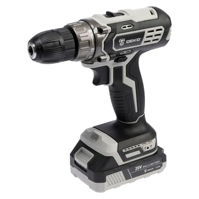 Дрель-шуруповерт DEKO DKCD20 Black Edition, 20 В, 2х2 Ач, Li-lon, кейс + набор 63 пр. — Характеристики
