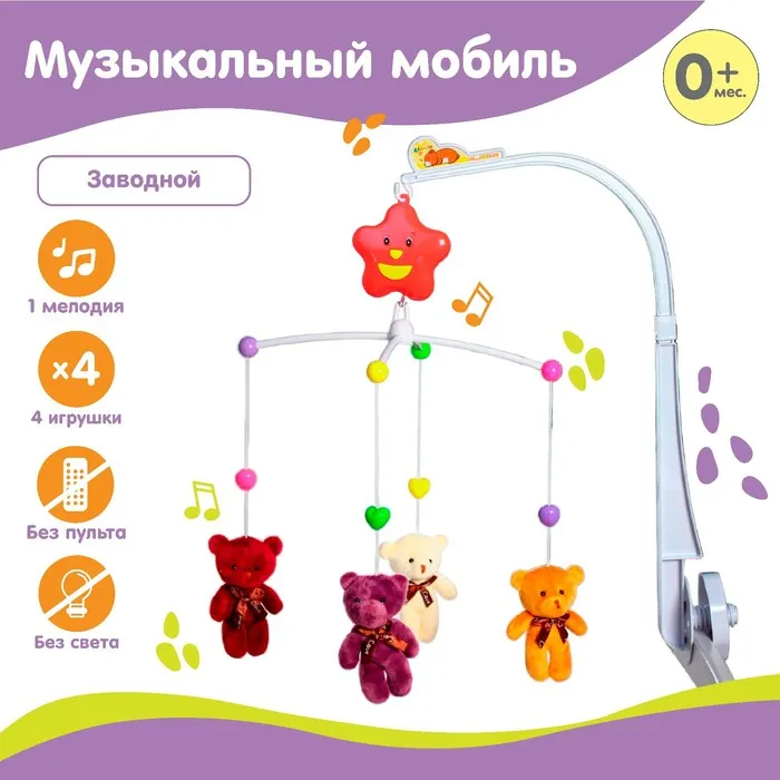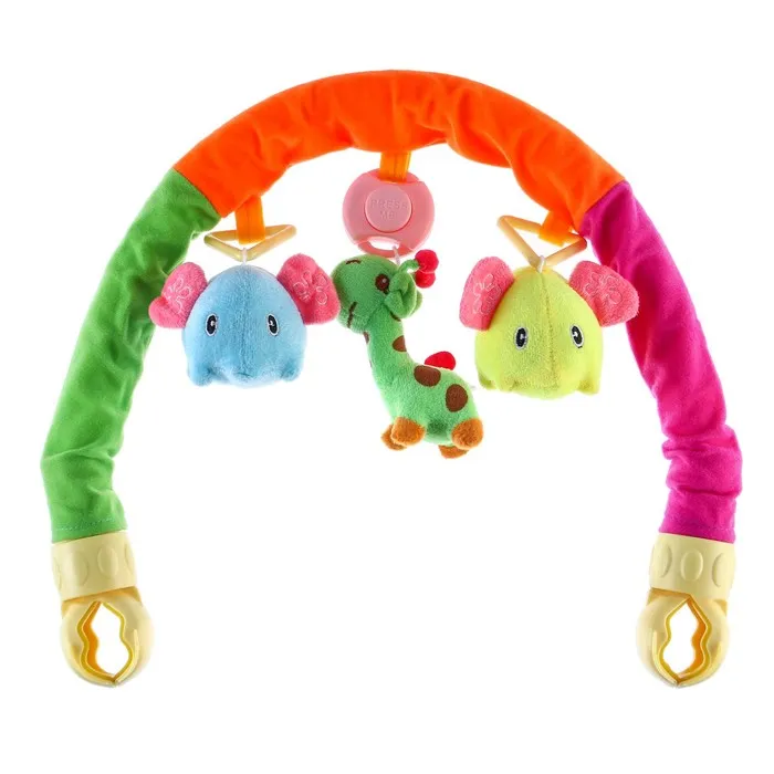Дуга игровая музыкальная на кроватку, коляску «Слоники», 42-68 см, 3 игрушки — Характеристики