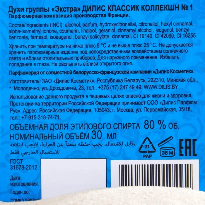 Духи для женщин Classic Collection №1 - невероятный аромат, который раскрывает многогранность женщины. Цветочные и пряные ноты складываются в единую композицию, а невероятно чувственный шлейф заставляет прислушиваться к аромату снова и снова. Белорусская косметика и парфюмерия хороший подарок маме, подруге, коллеге, любимой, бабушке, на свадьбу, день рождения и для дома.