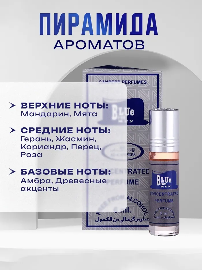 Blue For Men – освежающий, стильный и гармоничный фужерно-пряный мужской парфюм. Аромат звучит мягко и очень красиво, что характерно для масляных духов, и при этом обладает скорее европейской легкостью и непринужденностью звучания.