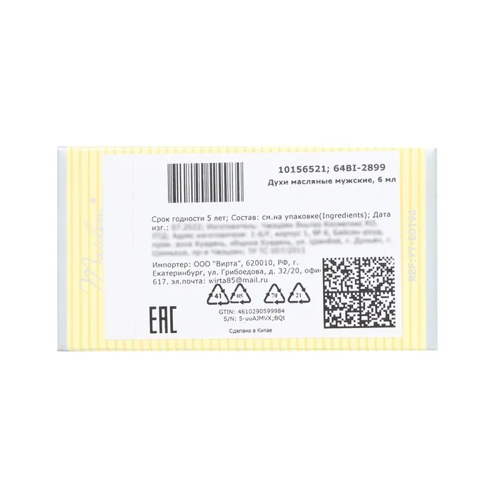 Духи масляные мужские One Secret, 6 мл — Характеристики