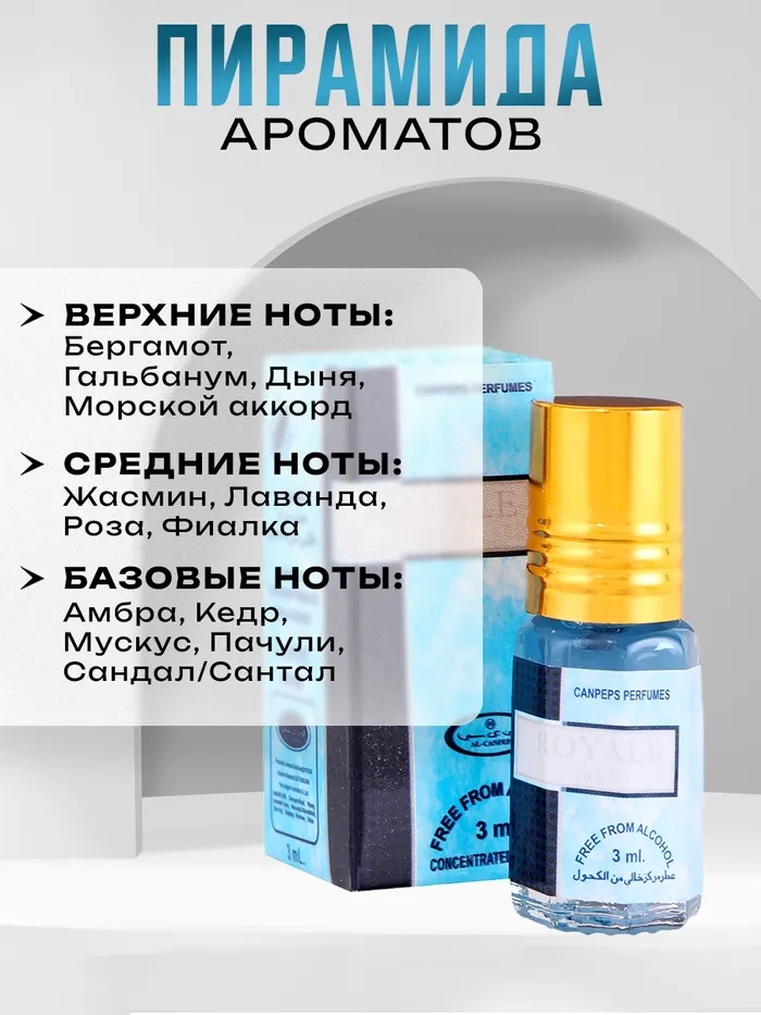Это невообразимый аромат, который способен заставить мужчину одолеть дорогу, вымощенную камнями, и преодолеть тоску. А сейчас он чувствует в воздухе душистые, обволакивающие волны аромата, которые будут сопровождать его на протяжении всей изменчивой, извилистой линии жизни настоящего мужчины - мачо. Он не желает расставаться со свежим запахом Кавайллонской дыни, мандарина и апельсина, огурца, смягченного запахом герани, базилика, полыни, а нежные, мускусные, чувственные древесные ноты дополняют аромат, который никогда не кончается…. Аромат окутывает его, вызывая приятное чувство, всегда создавая ощущение реальной жизни вокруг него. В течерие всей жизни Royale Blue придает ему силу и способность чувствовать себя совершенным мужчиной.