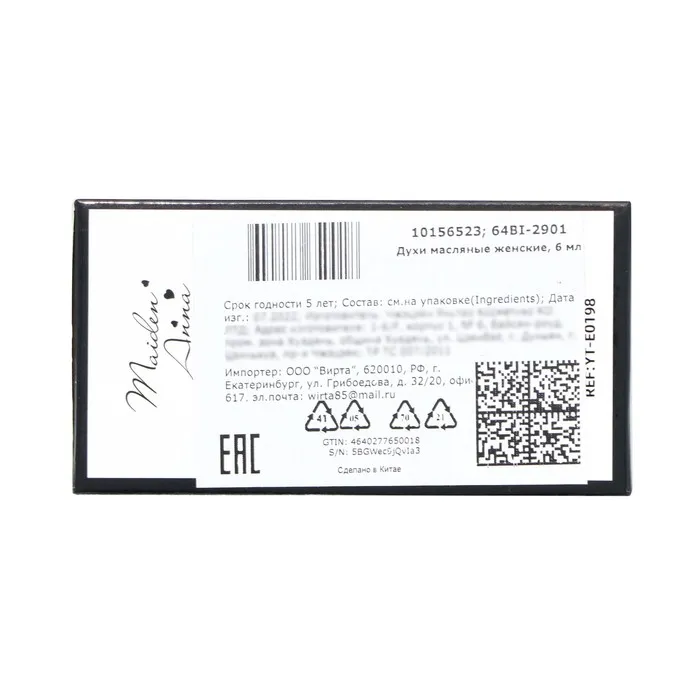 Духи масляные женские VIP free, 6 мл — Характеристики