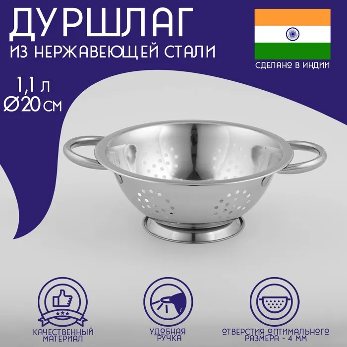 Дуршлаг Доляна, 900 мл, d=18 см, толщина 0.3 мм, длинная ручка, нержавеющая сталь — Характеристики